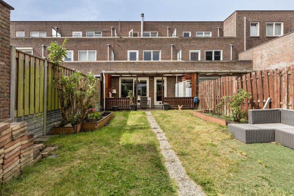 De serre vormt een mooie overgang van binnen naar buiten en biedt het hele jaar door een fijne plek om te zitten. De diepe, zonnige tuin biedt privacy, groen en volop ruimte voor lange avonden met vrienden en familie. Achterin staat een ruime, vrijstaande stenen berging, ideaal voor fietsen of tuinmeubilair.