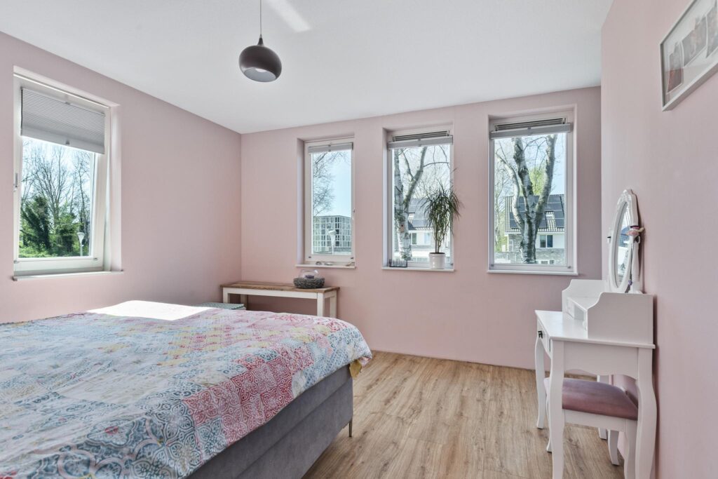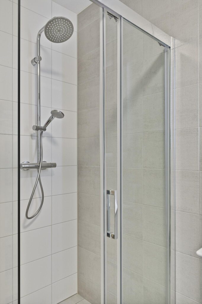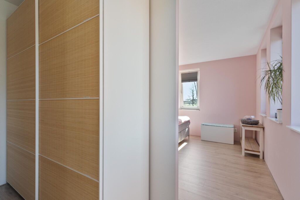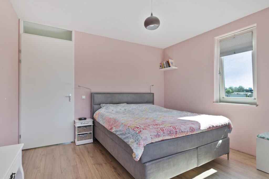 De overloop geeft toegang tot de badkamer, een separaat toilet en drie ruime slaapkamers, elk met veel daglicht dankzij de hoge ramen. De grootste slaapkamer aan de achterzijde is bovendien voorzien van een walk-in closet. De badkamer is modern afgewerkt met neutrale tinten, een ligbad, aparte regendouche en een wastafelmeubel met verlichte spiegel. Alles is keurig onderhouden en direct klaar voor gebruik.