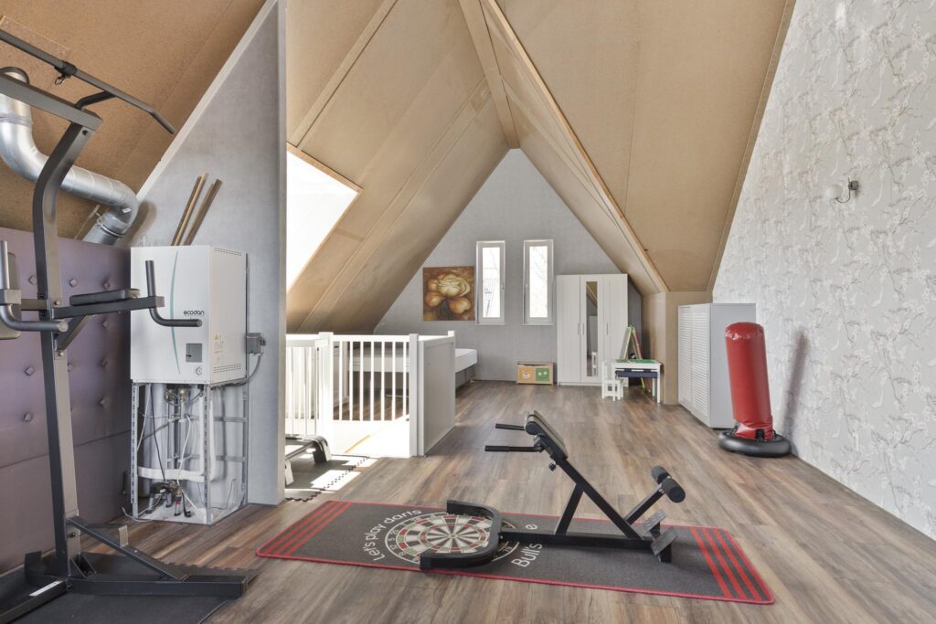 De zolderverdieping is een fantastische ruimte met een indrukwekkend hoge nok en een speelse indeling. Hier vind je een grote, open kamer die dienst kan doen als vierde en/of 5e slaapkamer, je eigen gym, kantoorruimte of speelzolder. Dankzij het grote oppervlak en de prettige lichtinval zijn de mogelijkheden eindeloos. Ook vindt men op deze etage de technische installaties en er is volop plek voor opbergkasten. Ook de witgoedaansluitingen zijn hier gesitueerd.