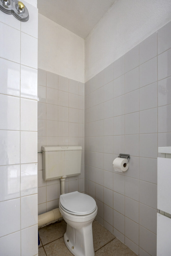 Op deze verdieping vindt u tevens een badkamer met douchecabine, wastafel en spiegel, en een separate toiletruimte. De badkamer is toe aan vernieuwing, wat u de kans biedt deze volledig naar uw eigen wensen en woonstijl te moderniseren.