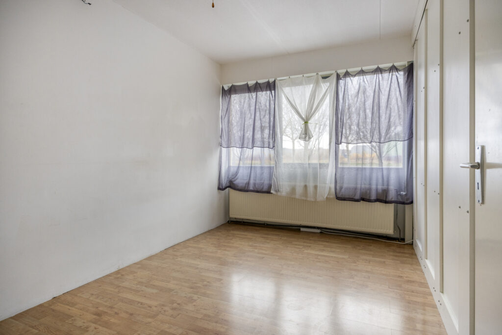 De slaapkamer aan de voorzijde is ruim, licht en veelzijdig te gebruiken. Dankzij de prettige lichtinval en ruimte voor een bed, bureau en kast, vindt u hier een fijne plek voor slapen, werken of studeren. Een kamer die met u meegroeit, passend bij elke levensfase.