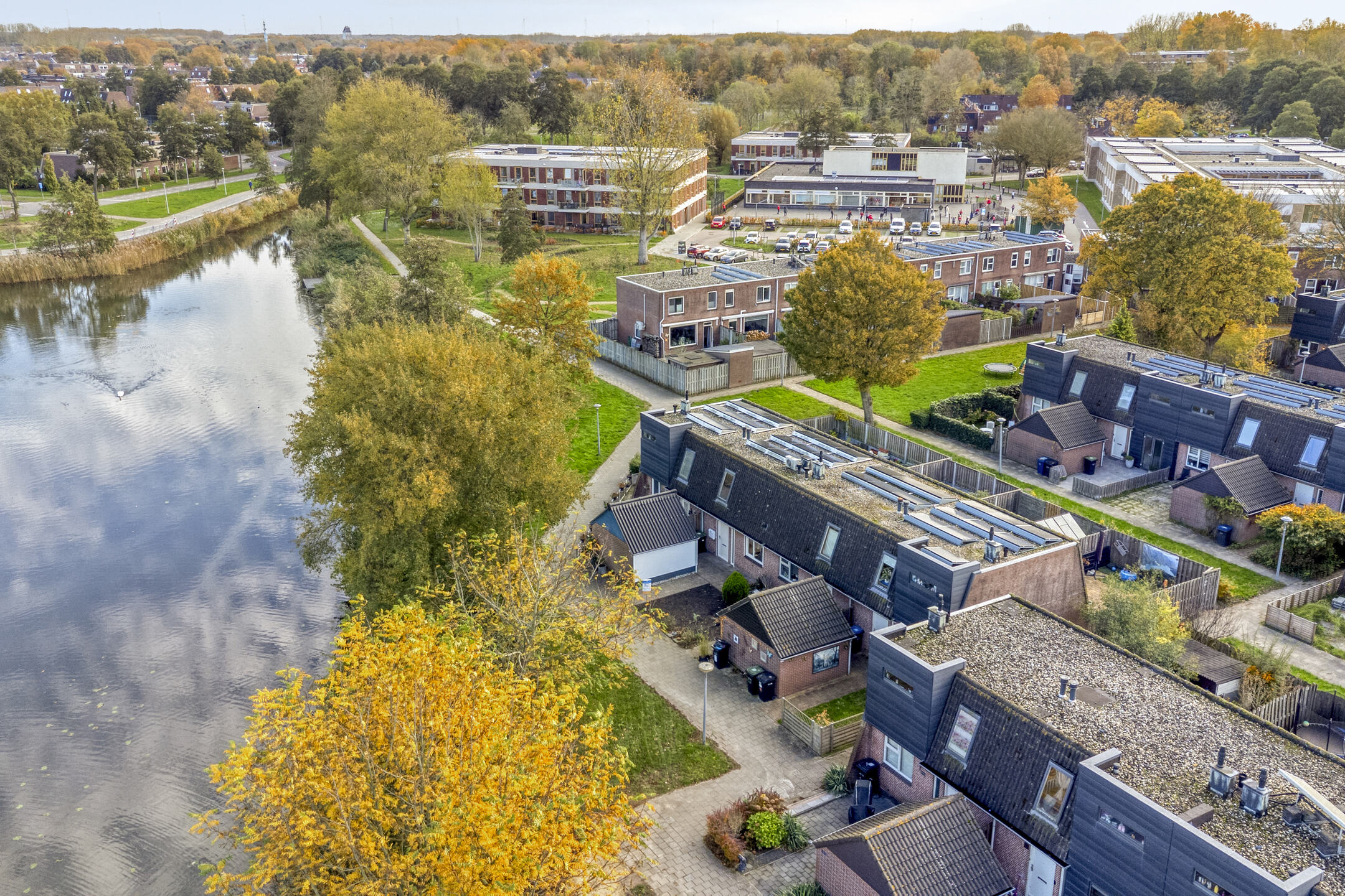 Achter de woning ligt een zonnige en onderhoudsarme tuin, grotendeels bestraat en voorzien van enkele groene accenten. Hier kunt u genieten van veel zonuren en rust. Er is voldoende ruimte voor een loungeset of eettafel, zodat u heerlijk buiten kunt ontspannen. Een zonnescherm biedt beschutting op warme dagen, terwijl de poort achterin de tuin zorgt voor een handige achterom.