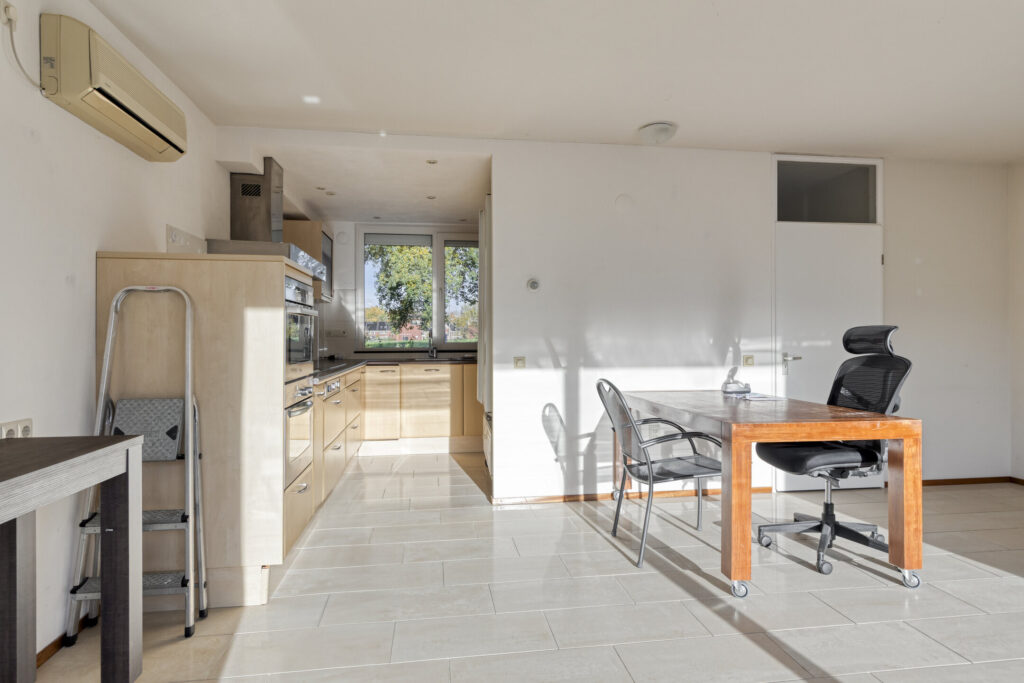 Aangekomen in de woonkamer valt direct de lichte en open indeling op. Dankzij de grote ramen aan de achterzijde geniet u van een aangename hoeveelheid daglicht. De ruimte biedt volop mogelijkheden voor het creëren van een gezellige zithoek en een eethoek waar u samen met familie of vrienden kunt genieten. De airconditioning zorgt voor een aangenaam binnenklimaat, zowel in de zomer als in de winter. Vanuit de woonkamer stapt u zo de zonnige achtertuin in. Een fijn verlengstuk van uw leefruimte.