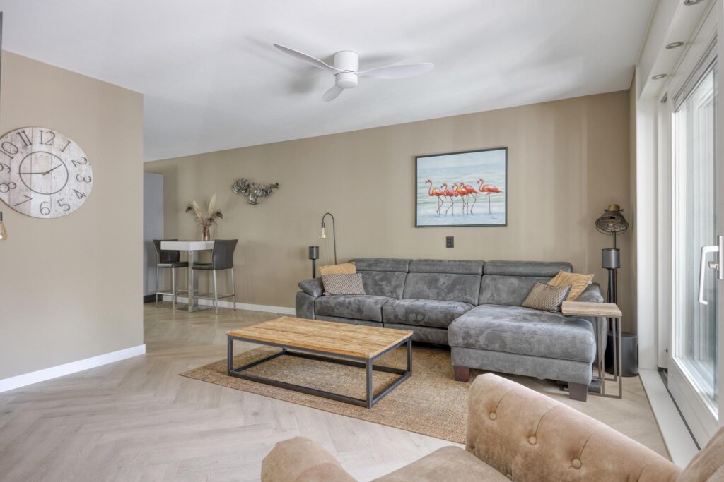 Instapklare, hoogwaardig afgewerkte geschakelde woning met garage, eigen oprit, prachtige veranda, keuken uit 2024, pvc met vloerverwarming én zonnige tuin op het zuidwesten.
