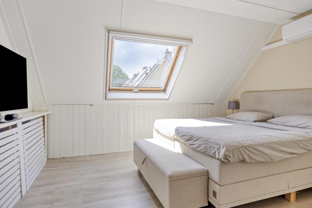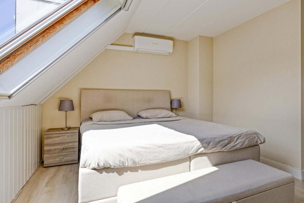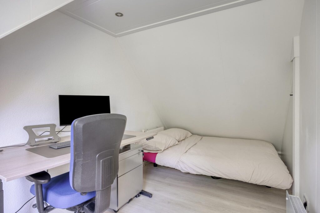 De tweede verdieping is momenteel ingericht met een ruime en lichte overloop, met aansluitingen witgoed, cv-installatie en omvormer ten behoeve van de zonnepanelen. Daarnaast is er een extra slaapkamer en veel bergruimte achter de knieschotten.