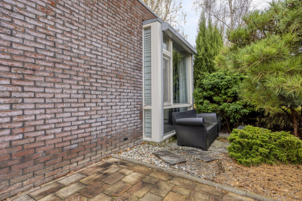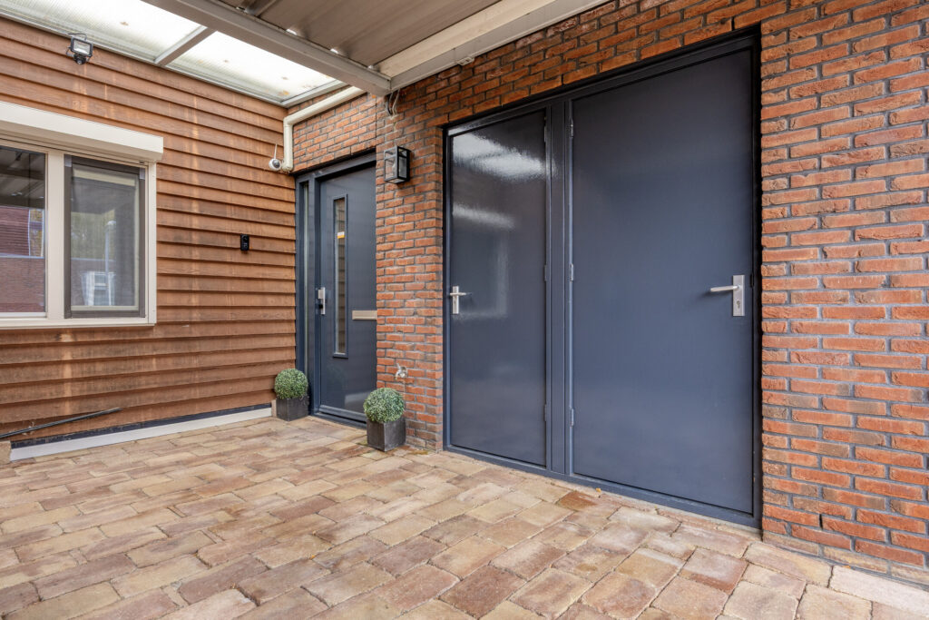 De achtertuin is volledig bestraat, strak aangelegd en biedt volop privacy dankzij de hoge erfafscheiding. Hier geniet je in alle rust van de zon, want de tuin ligt op het zuiden. De sfeervolle zitplek en het onderhoudsvriendelijke karakter maken dit een heerlijke plek om te ontspannen. Aan de voorzijde vind je een ruime oprit met carport, een berging en extra beplanting die het geheel een verzorgde uitstraling geeft.