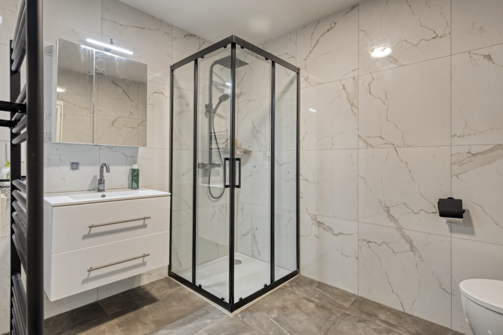 De slaapkamers zijn rustig gelegen en prettig van formaat, met voldoende ruimte voor een tweepersoonsbed, kasten en persoonlijke accenten. De badkamer is modern afgewerkt en voorzien van een regendouche, wandcloset en een stijlvol wastafelmeubel met spiegelkast.