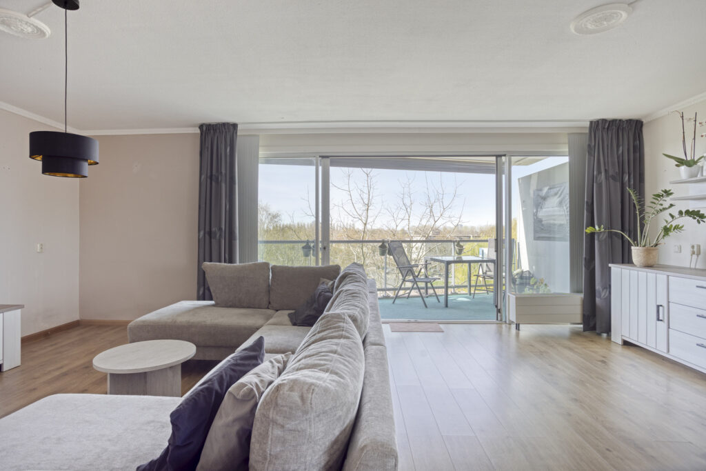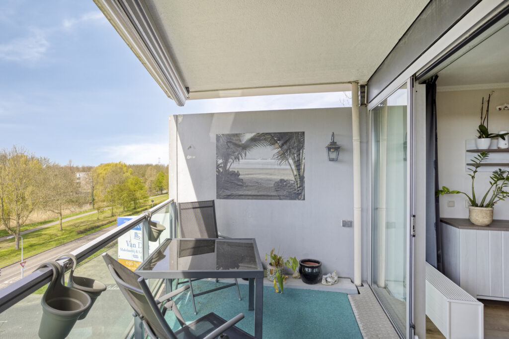 Het ruime balkon is een heerlijke plek om tot rust te komen en van het buitenleven te genieten. Vanuit de woonkamer stapt u zo naar buiten, waar u voldoende ruimte heeft voor een zitje. Het balkon biedt een prettig en weids uitzicht, waardoor u hier in alle rust kunt ontspannen.