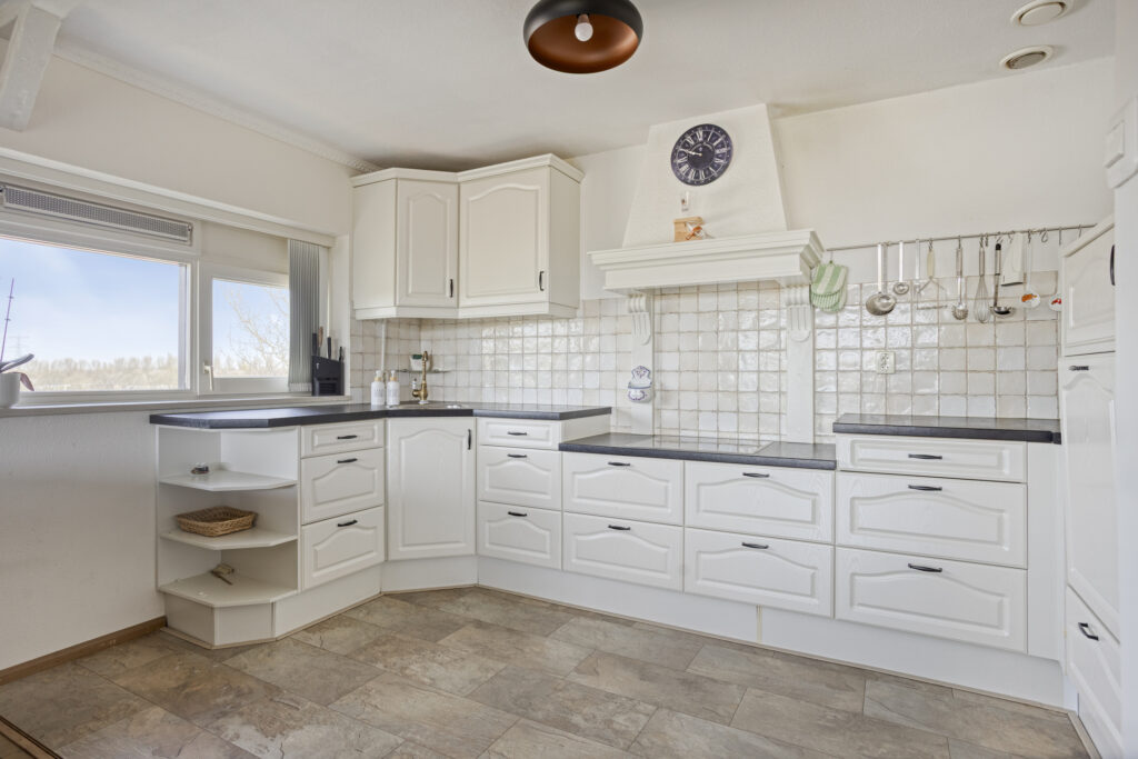 De open keuken grenst naadloos aan de woonkamer en is uitgevoerd met een L-vormig aanrecht. U beschikt hier over diverse inbouwapparatuur, waaronder een inductiekookplaat, spoelbak, vaatwasmachine, ingebouwde ovencombinatie en koelkast. De keuken biedt volop opbergruimte dankzij de aanwezige lades en kastjes.