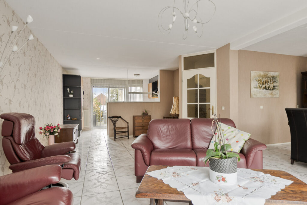 De woonkamer vormt het hart van de begane grond en kenmerkt zich door de open indeling en de prettige lichtinval. Dankzij de grote raampartijen valt er veel natuurlijk daglicht naar binnen, wat de ruimte een aangename en lichte sfeer geeft. De woonkamer biedt voldoende ruimte om een comfortabele zithoek en een gezellige eethoek te creëren, waardoor de ruimte eenvoudig kan worden ingedeeld in een woon- en eetgedeelte. Via een openslaande deur loopt u bovendien zo de achtertuin in, wat binnen en buiten op een natuurlijke manier met elkaar verbindt.