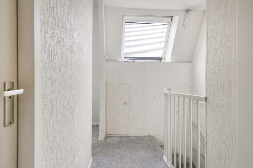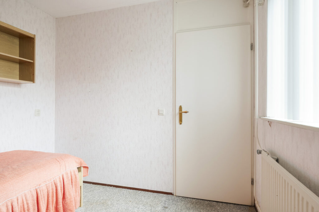 De slaapkamer op deze verdieping is ruim en goed onderhouden. Dankzij de dakkapel profiteert de kamer van extra ruimte en een prettige hoeveelheid daglicht. De kamer biedt voldoende plek voor een bed, een bureau en een kast en kan daardoor op verschillende manieren worden ingericht. Het is een fijne en rustige ruimte om te ontspannen of te werken.